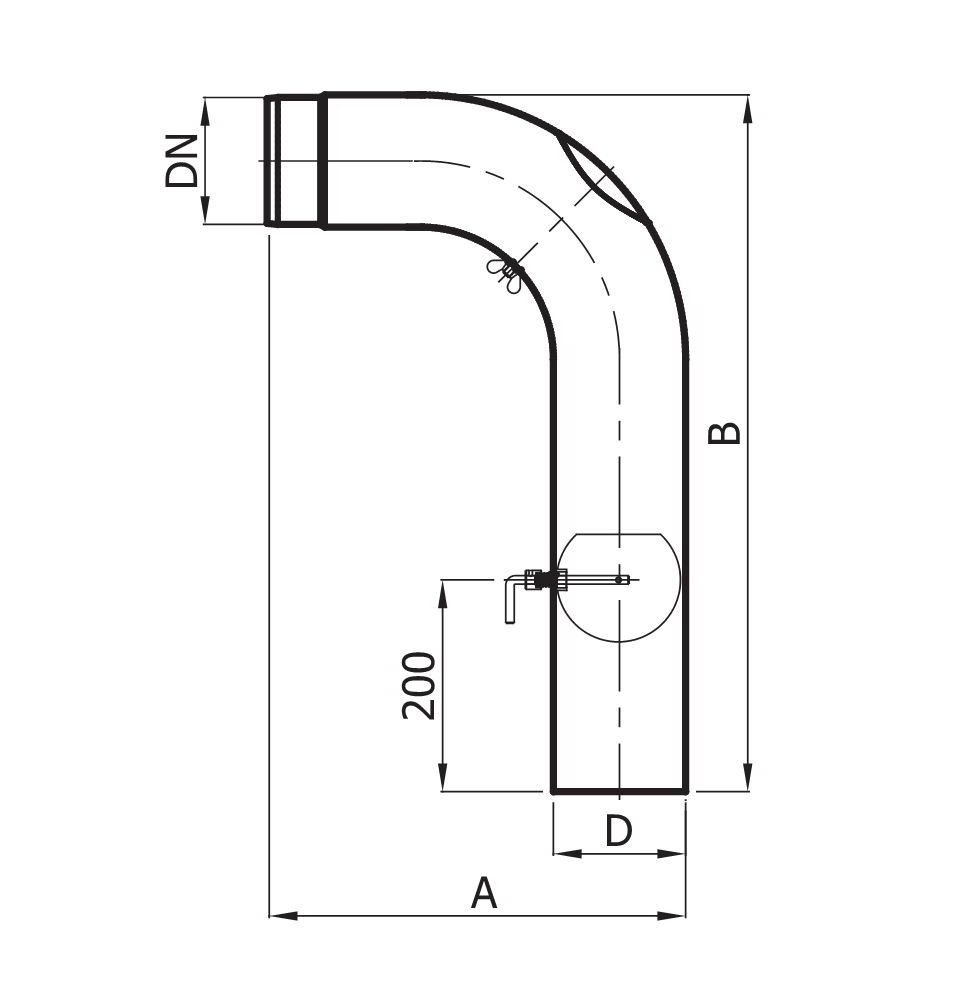 Колено гнутое с шибером и ревизией d150