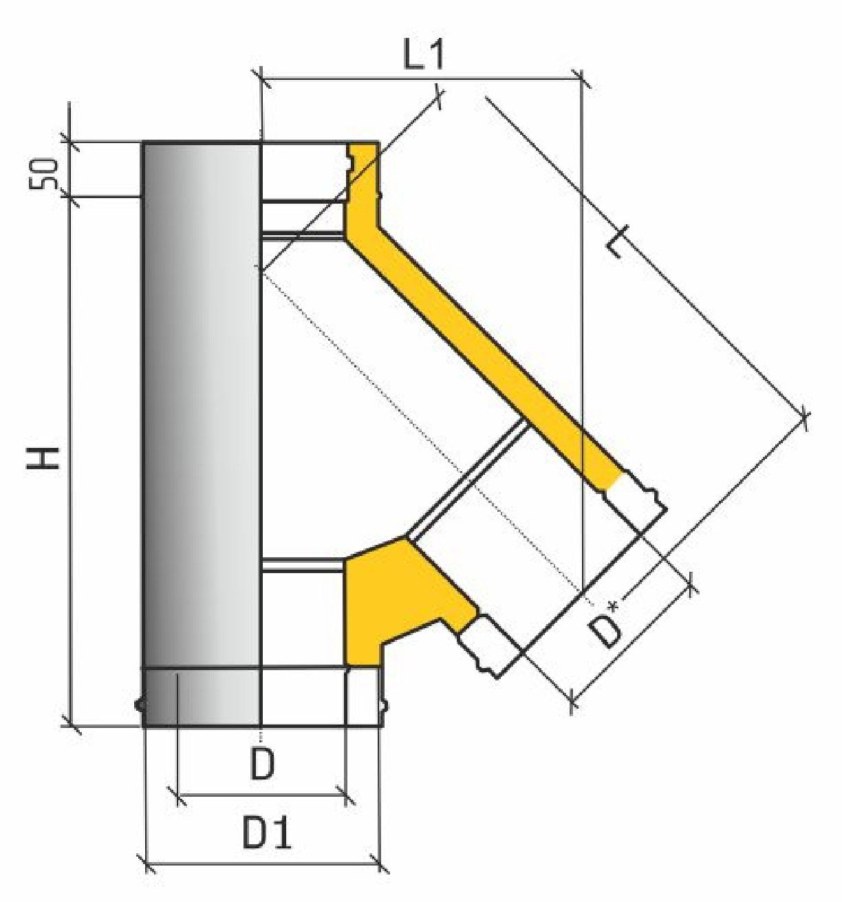 Тройник TРT-Р 45° d250/310 430-0,8
