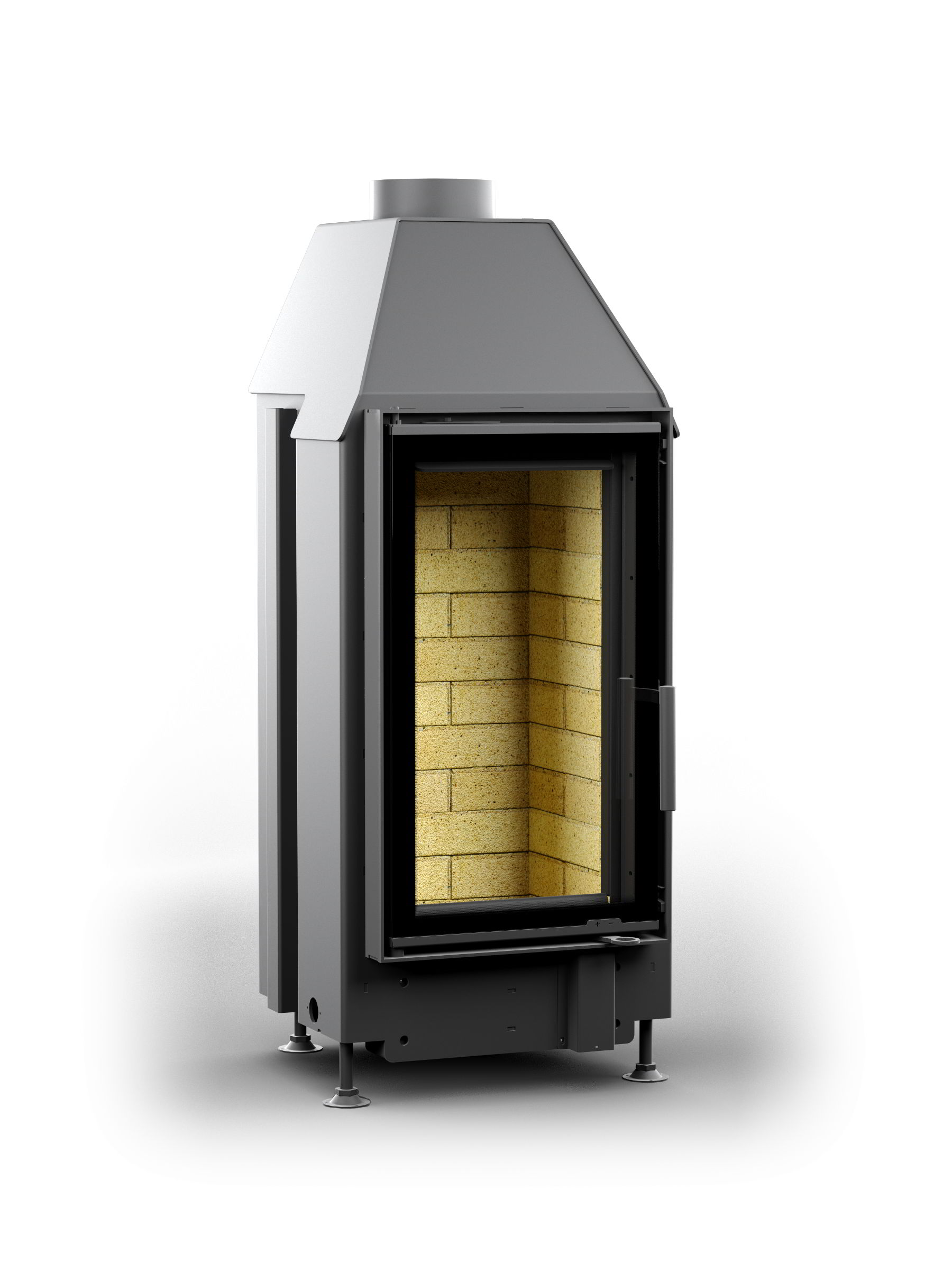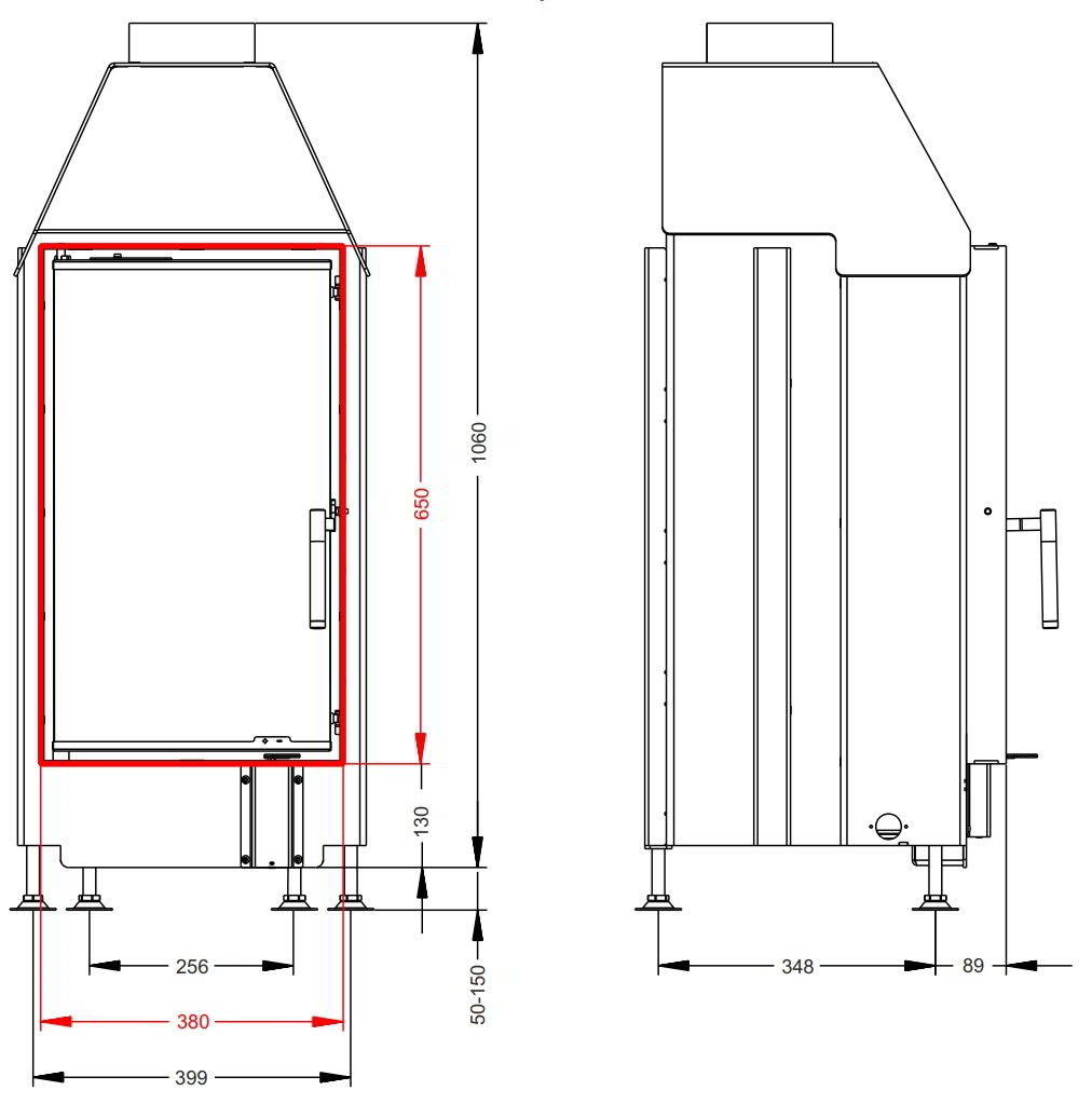 Топка отопительного класса, с боковым открыванием дверцы. Красивый вид на огонь. Усиленный внешний корпус.