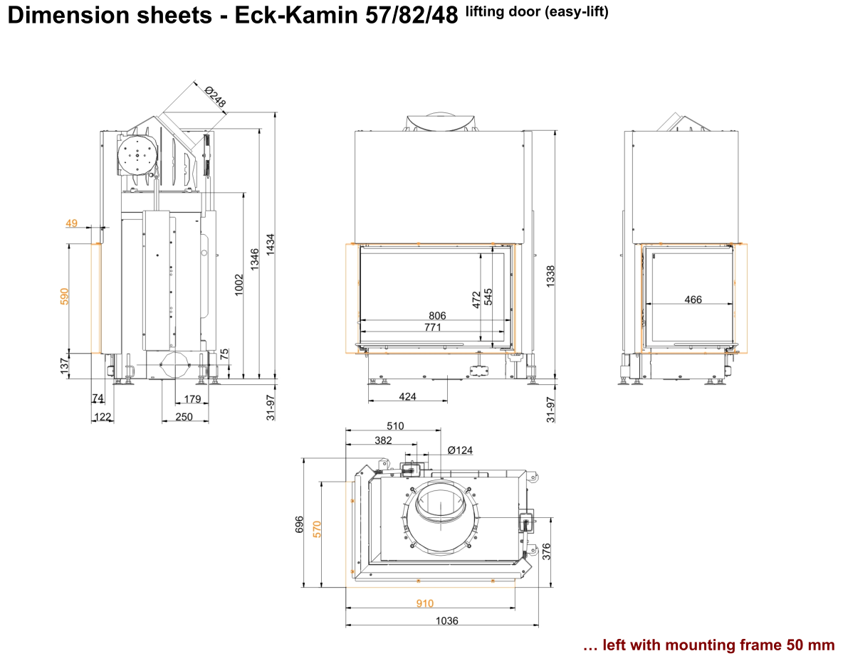 Каминная топка Brunner Eck Lift 57/82/48 Right