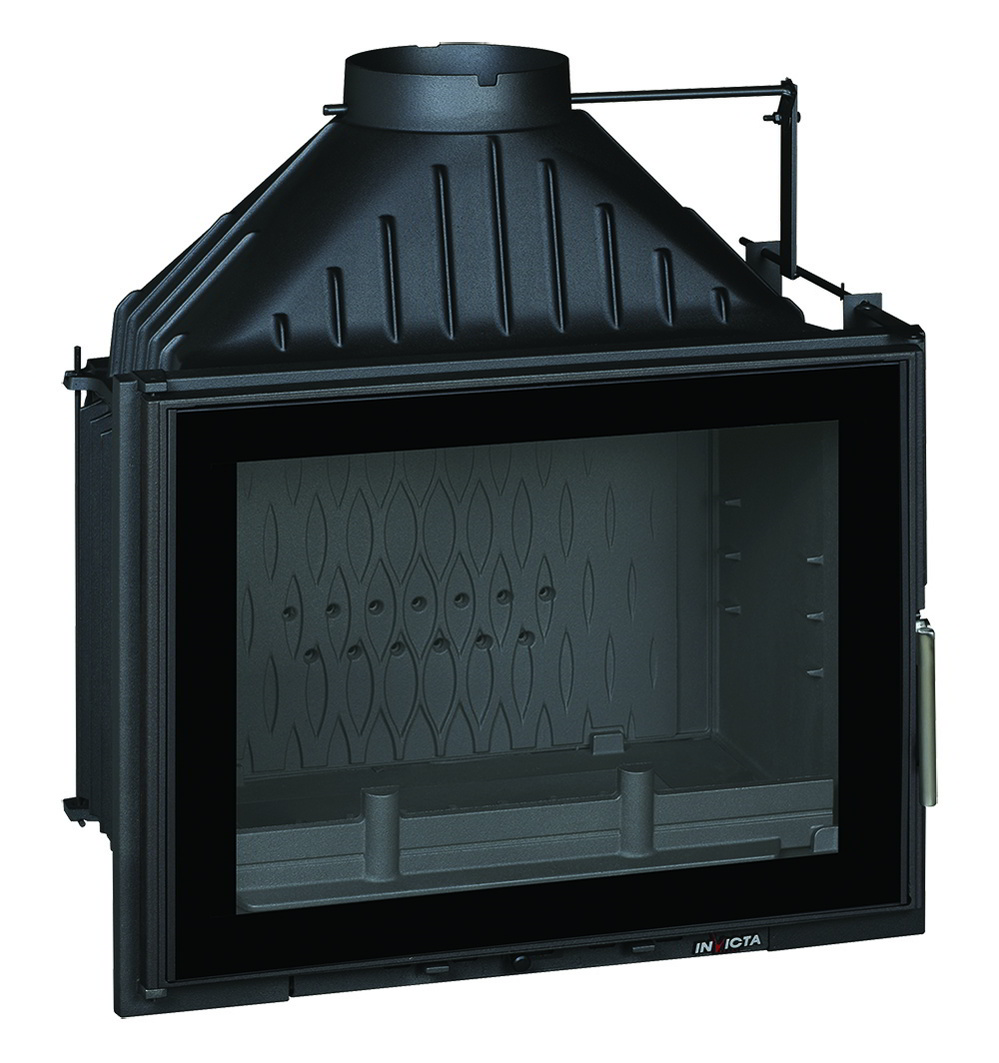 Каминная топка с узкой стеклянной рамкой Grand Angle 700. Производитель - Invicta, Франция. Полностью чугунная топка. 5 лет гарантии. Вторичный дожиг газов. Закладные под гриль.