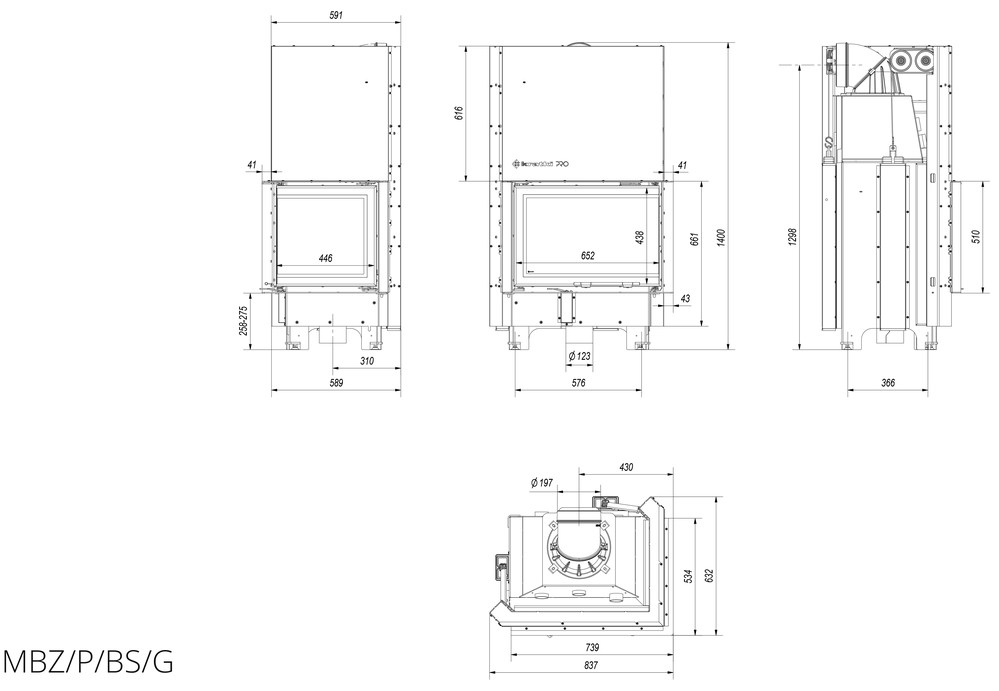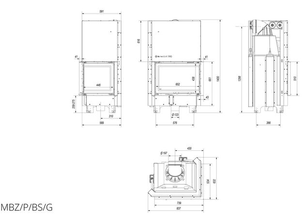 Каминная топка Kratki MBZ 13 R/BS/G