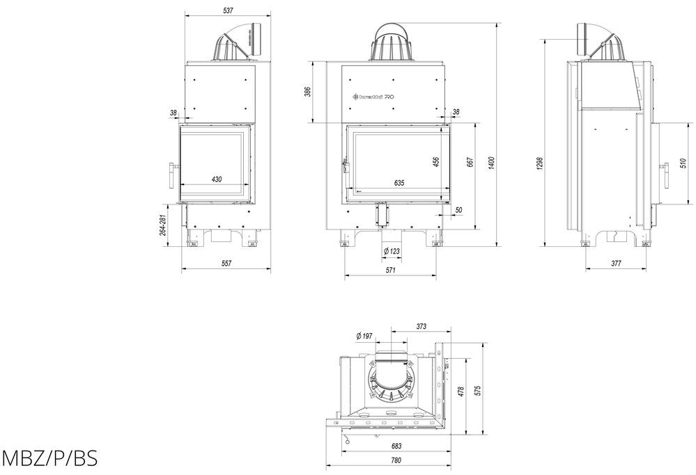 Каминная топка Kratki MBZ 13 R/BS