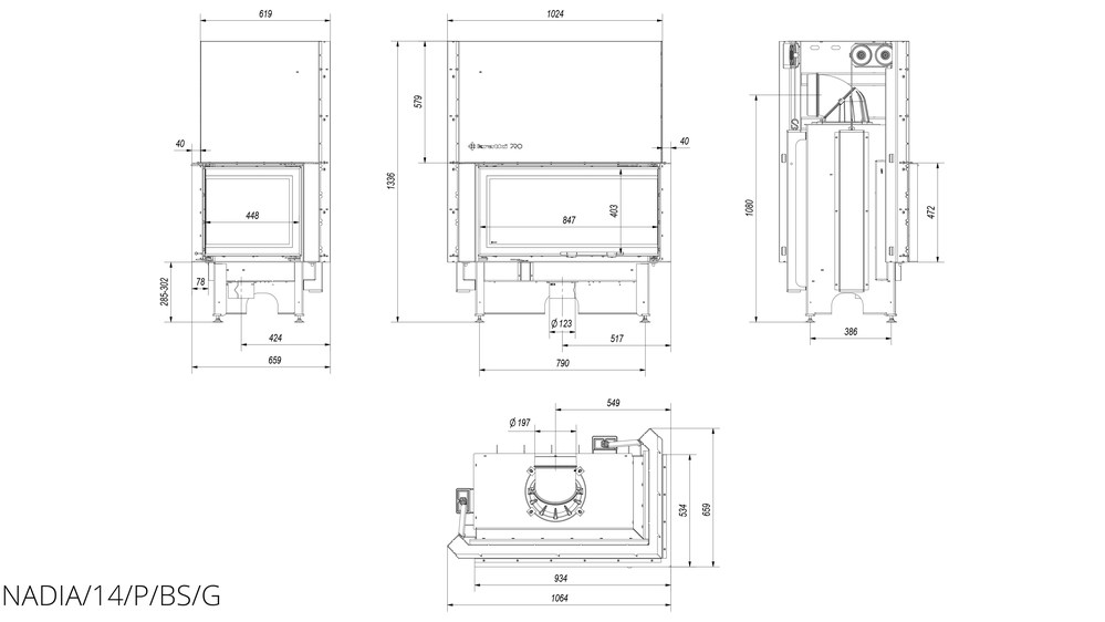 Каминная топка Kratki Nadia 14 R/BS/G