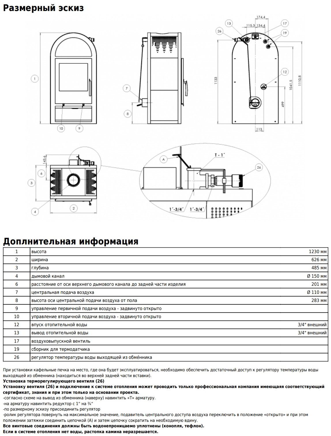 Диаметр дымохода: