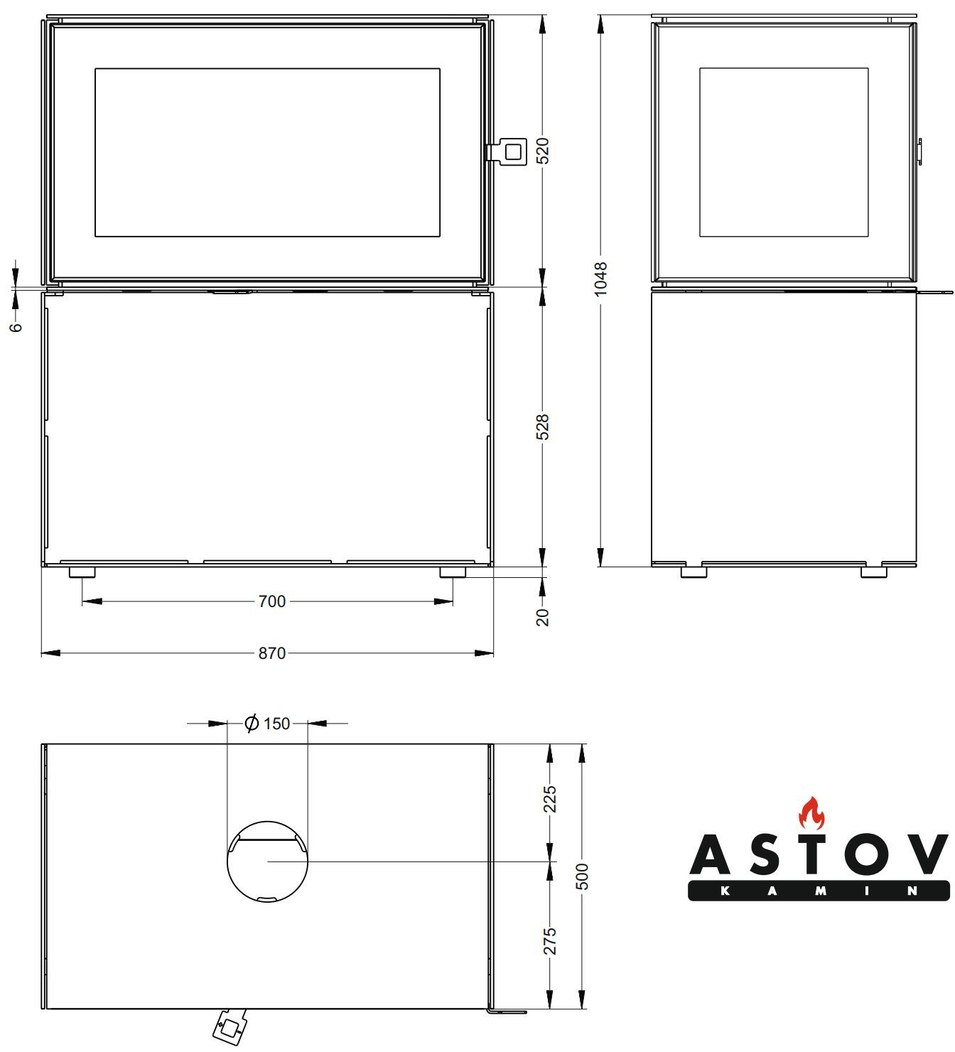 Печь-камин Astov КУБ 3С 800 на дровнике