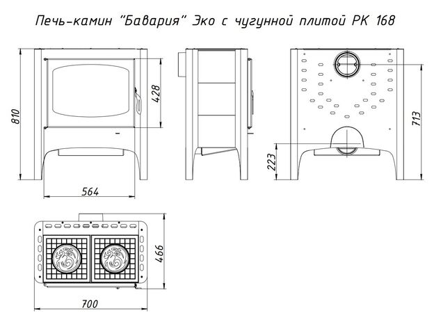 Печь-камин EcoKamin Бавария Эко с плитой две конфорки