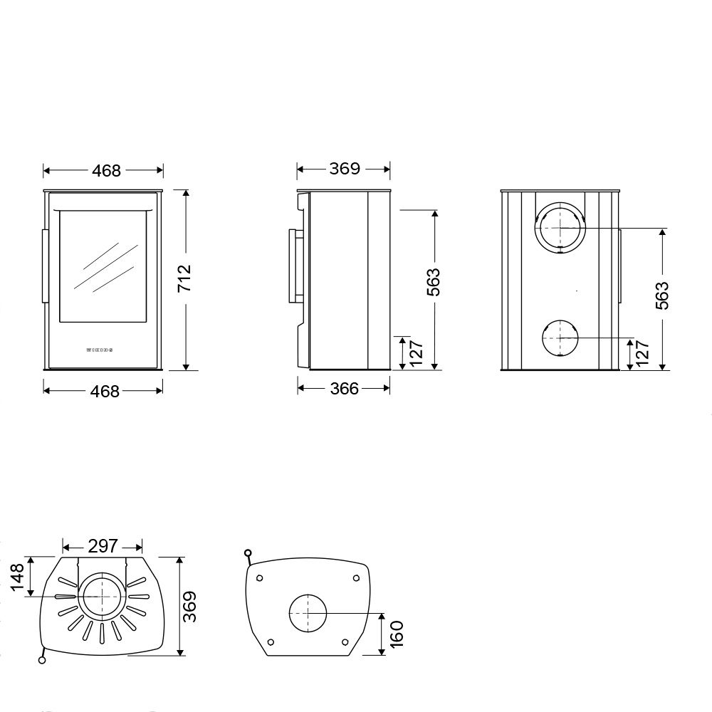 Габариты. Печь не занимает много места, не требует большого пространства для установки. При этом Wiking Miro имеет огромное остекление. Для установки печи не нужен фундамент. Её можно устанавливать на любой тип полового покрытия. В том числе на деревянные полы или на ламинат. Нижняя часть Викинг Миро не нагревается СОВСЕМ. Для защиты от возможного попадания случайных угольков на пол мы укладываем перед печью небольшой стальной или стеклянный притопочный лист.